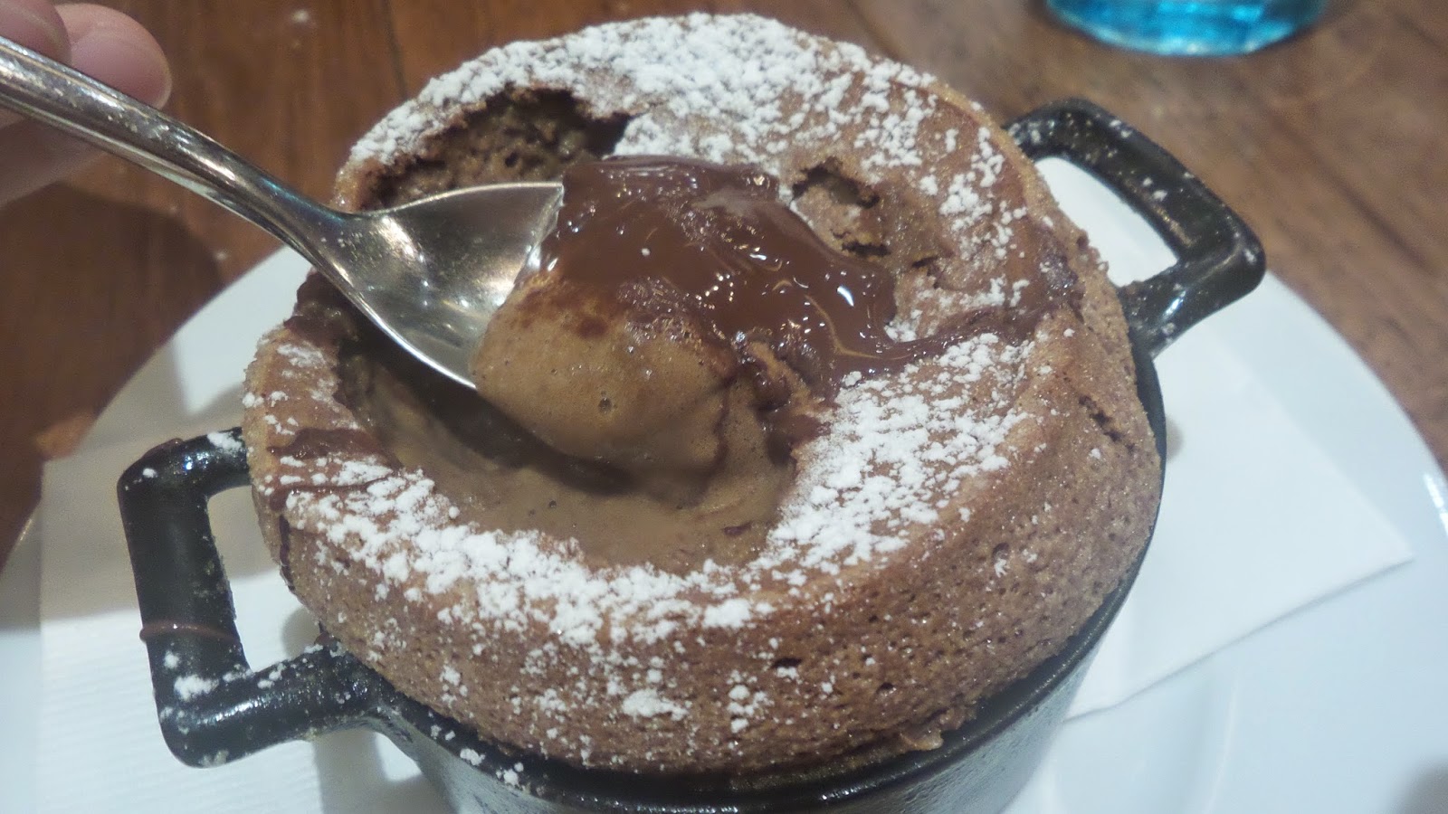 It has got to be the best souffle i ever have tried. Moist sponge cake soaked with chocolate and baked till light and decadent with a layer of icing atop the crisp surface was unexpectedly delightful. The 20-30 min wait time was surely not an issue if the result was chomping down mouthfuls of bliss.